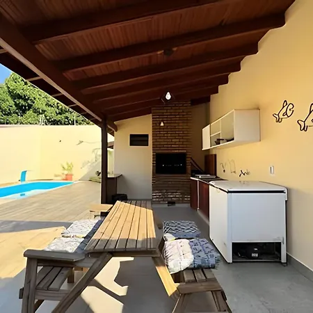 Guests staying at Piscina E 4 Quartos Ha 3 Min Da Praca Principal apartment can take advantage of its self-catering amenities, such as an equipped kitchenette, and an outdoor dining area.